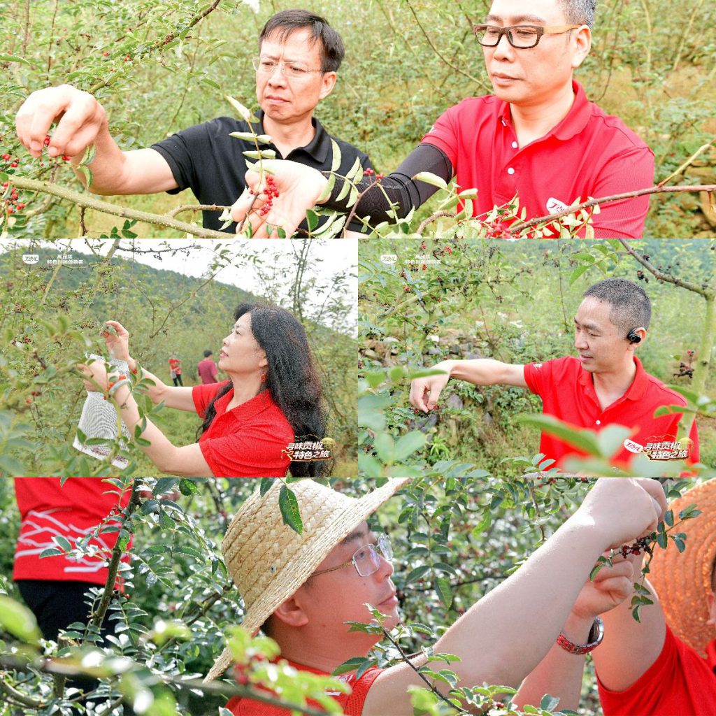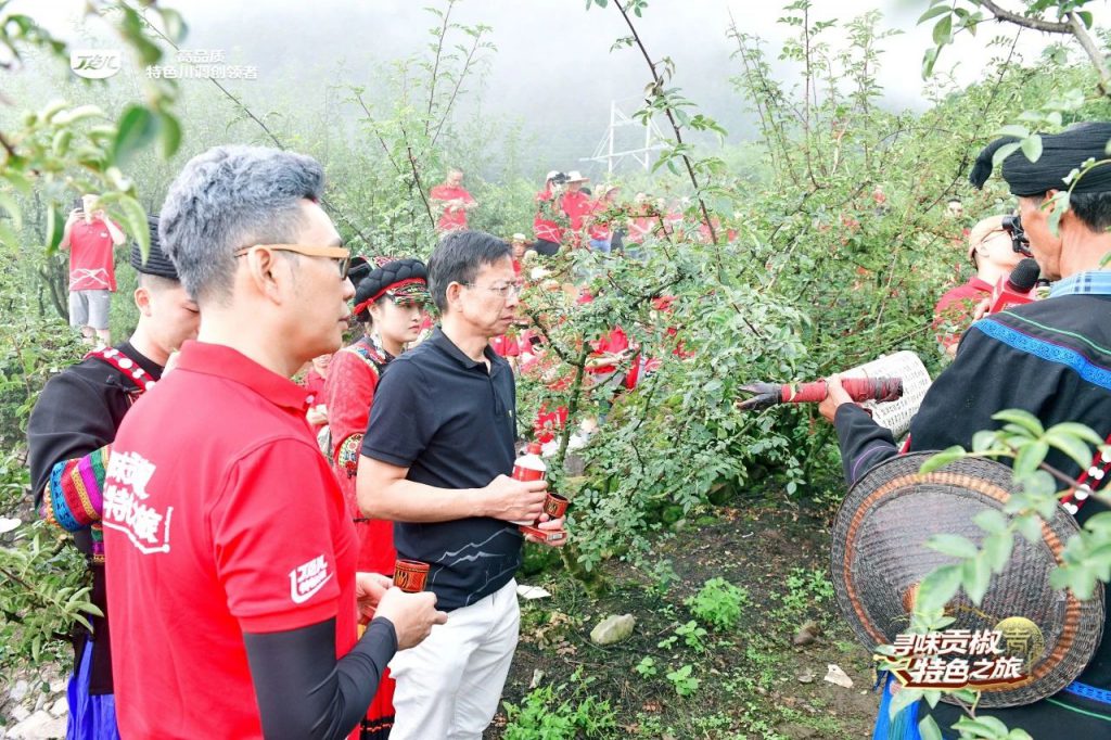 郁郁蔥蔥的花椒林前,丁點兒食品董事長任康、川菜大師蘭明路等嘉賓出席了摘椒儀式,輕輕摘下每一顆成熟飽滿的貢椒,動作中充滿了對這片土地的敬畏與感激。