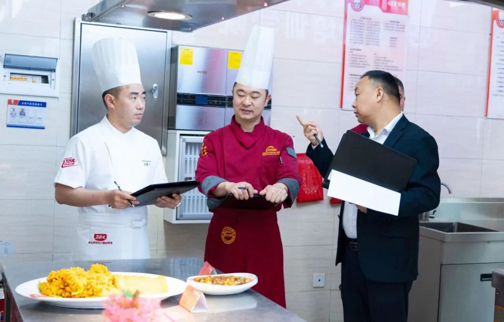 評委們穿梭在操作臺前,仔細(xì)觀察選手們的操作,從菜品的色澤、香氣、味道、造型等方面進(jìn)行全面、細(xì)致的評判。