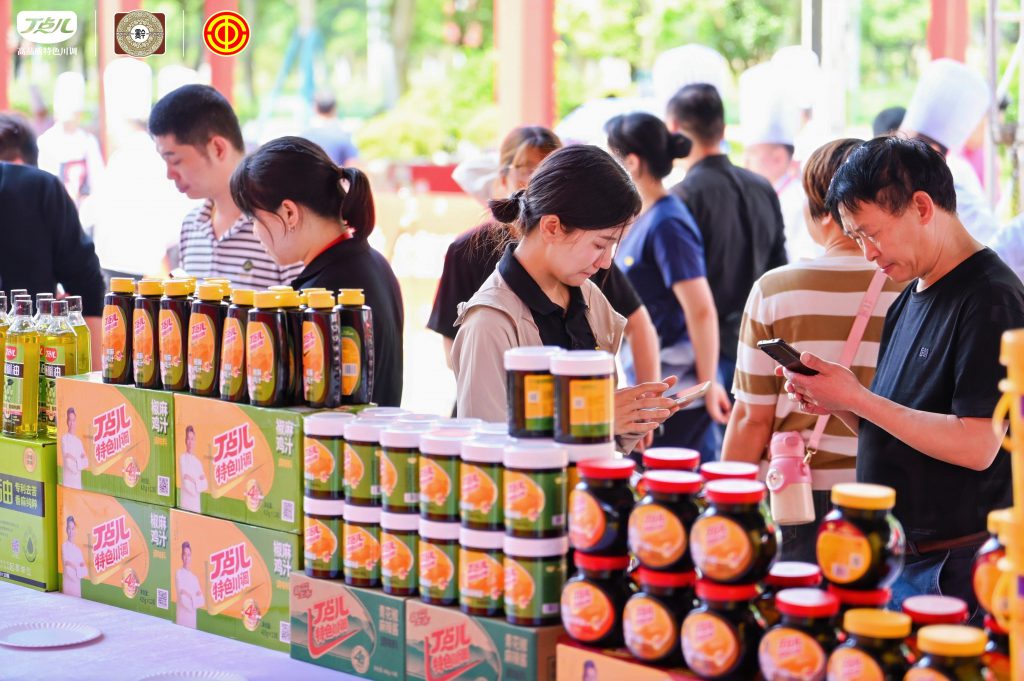 比賽現(xiàn)場,丁點兒食品不僅為選手們提供了專業(yè)調(diào)味支持,更設置了產(chǎn)品展示區(qū)。展臺上,丁點兒干鍋醬、金湯酸菜醬、麻得倒純萃花椒油等豐富的產(chǎn)品種類,現(xiàn)場陳列醒目,其獨特的風味吸引了眾多嘉賓咨詢了解,絡繹不絕。